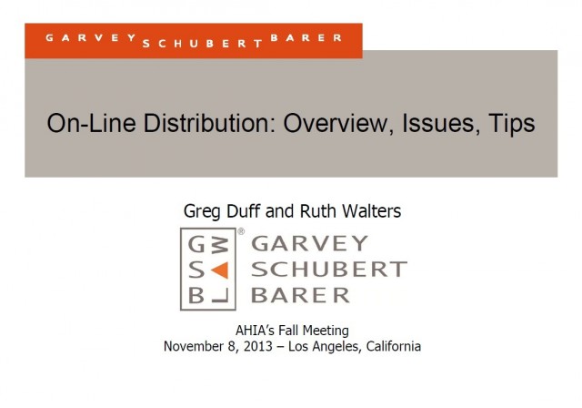 For those readers and followers unable to attend last month’s AHIA Fall Meeting in Los Angeles, we have posted below our PowerPoint presentation, “On-Line Distribution: Overview, Issues and Tips.” A huge thanks to AHIA for hosting us last month.