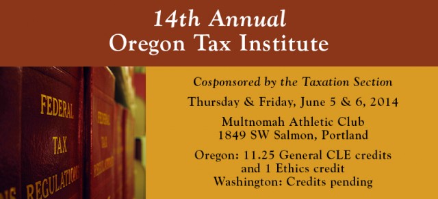 As the Chair of the Oregon Tax Institute (OTI), I would like to invite you to the 14th Annual Oregon Tax Institute scheduled for June 5 & 6 in Portland, Oregon. We have grown the OTI from a local tax forum into a preeminent tax institute for both tax attorneys and CPAs. Our topic coverage and faculty this year are fabulous and each one of our speakers is a nationally recognized expert in tax law. This year’s OTI will be on par with the best tax institutes in the country.