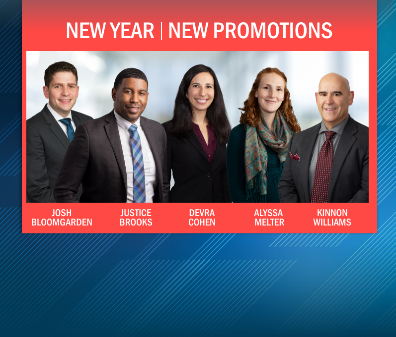 SEATTLE, Jan. 5, 2023 – Foster Garvey today announces the elevation of five attorneys to Principal: Associates Joshua Bloomgarden, Justice Brooks, Devra Cohen, Alyssa Melter and Of Counsel Kinnon Williams. Representing three of the firm’s five U.S. office locations and a cross-section of practice areas, the promotions were effective January 1.