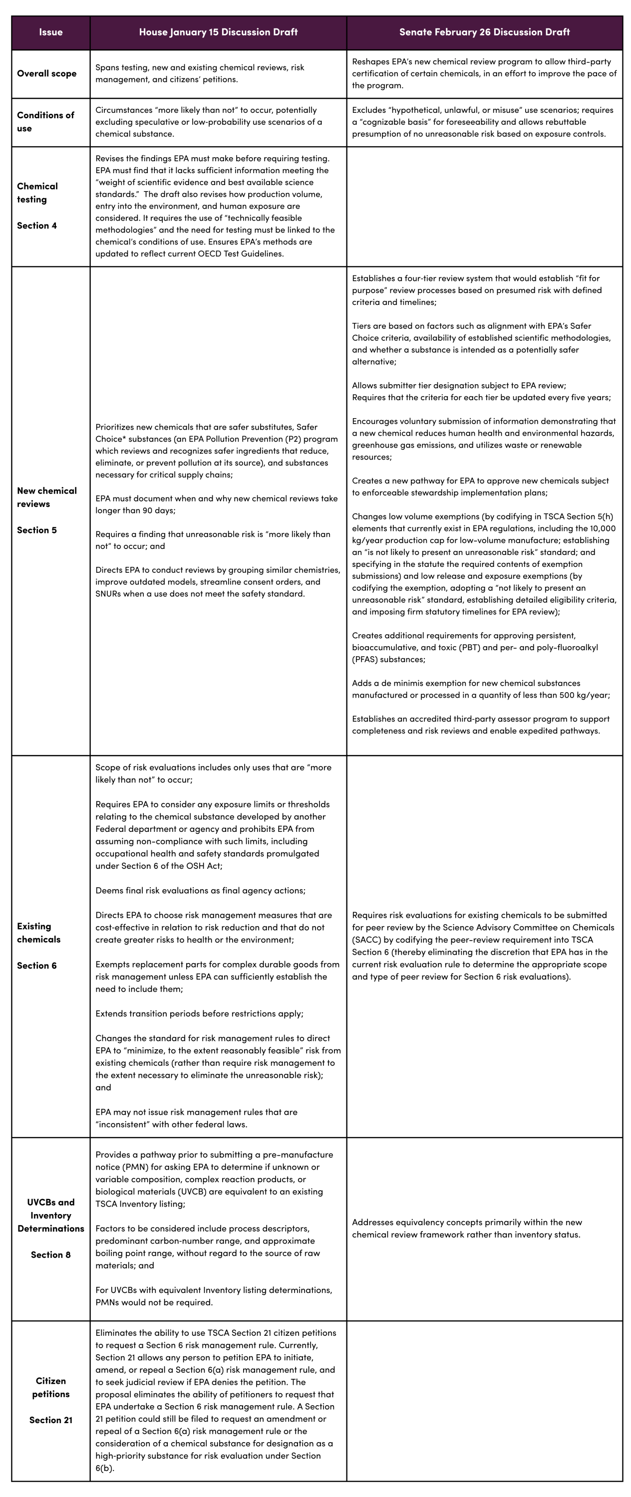 Proposed TSCA Amendments: A Comparison of House and Senate Discussion Drafts
